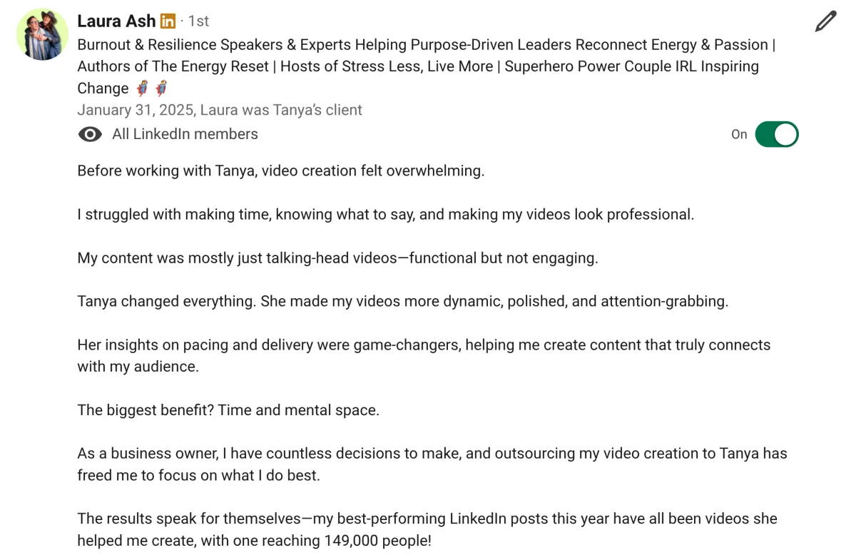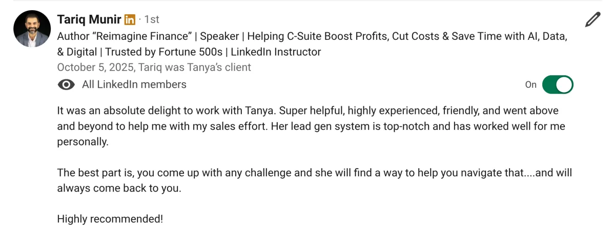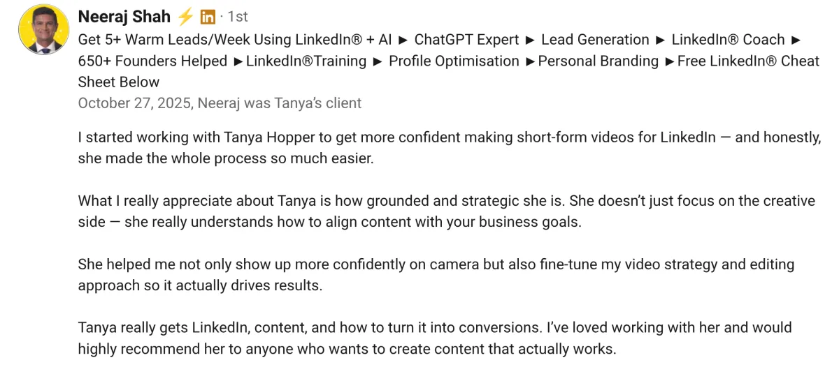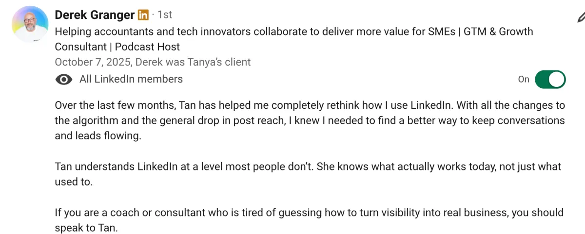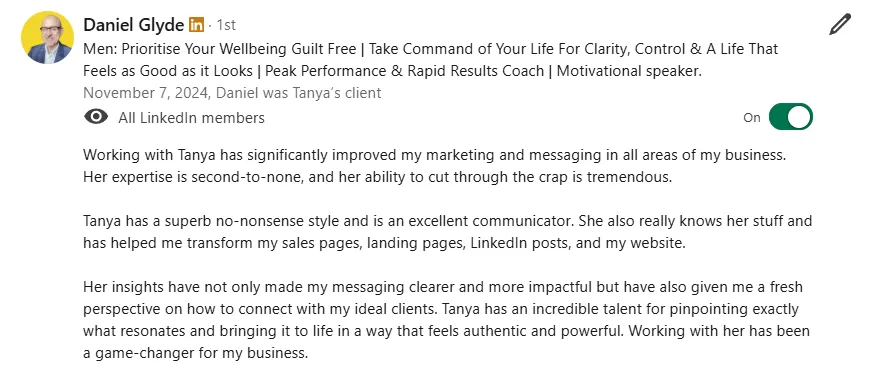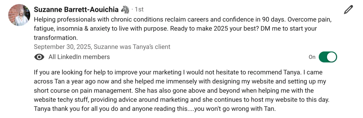 "Working with Tanya has transformed my business."