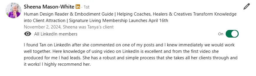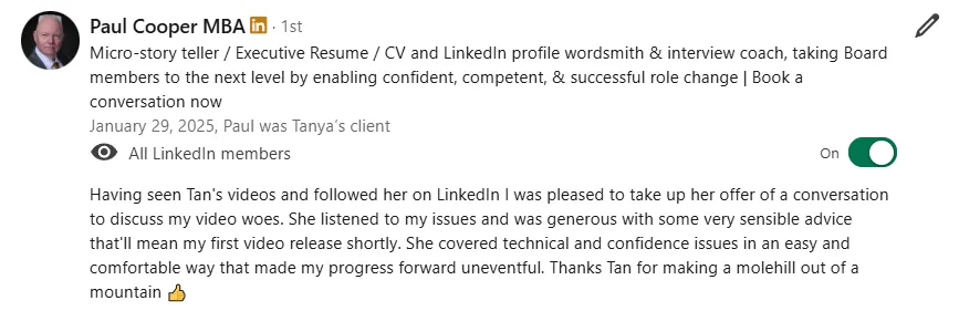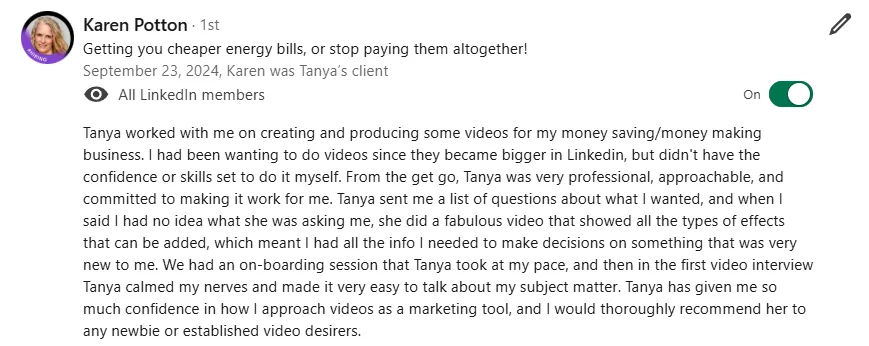 "I signed up with Tanya. And I have to say, an absolute delight, a no-brainer. So so happy that I did it."